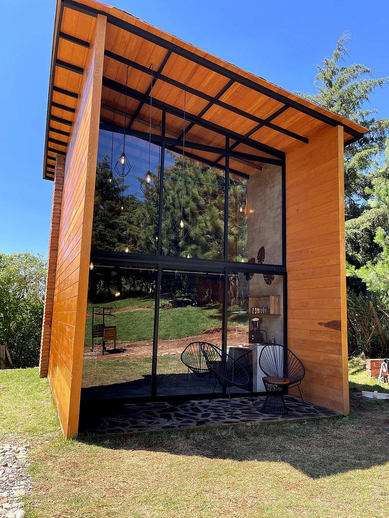 Complejo de 6 cabañas llamado Reserva Los Espinos, cada una con un diseño diferente y ambientadas con los materiales ideales para Tapalpa con un toque minimalista. Cada cabaña cuenta con su propia área para hacer fogata al exterior y asador en su terraza.