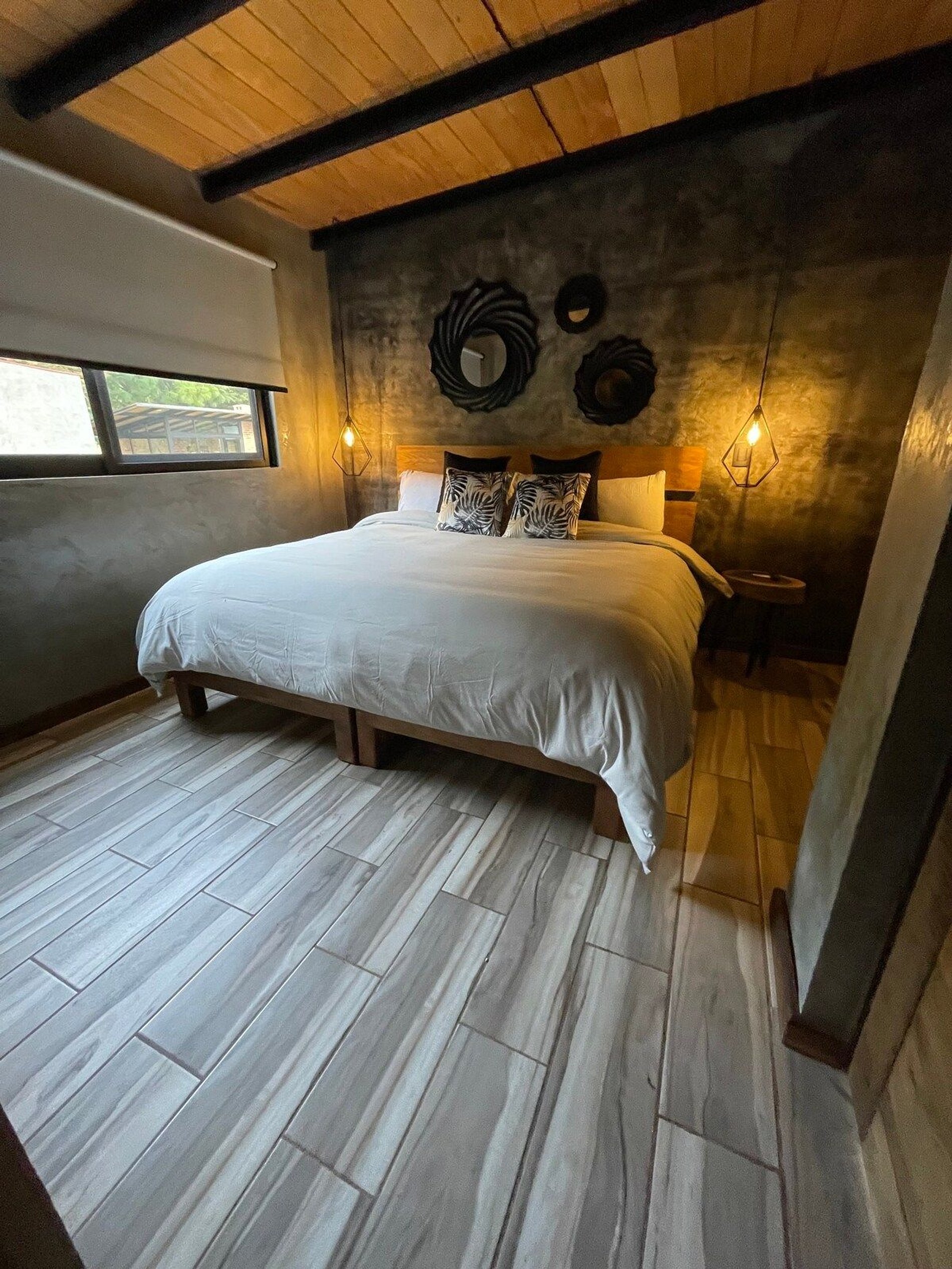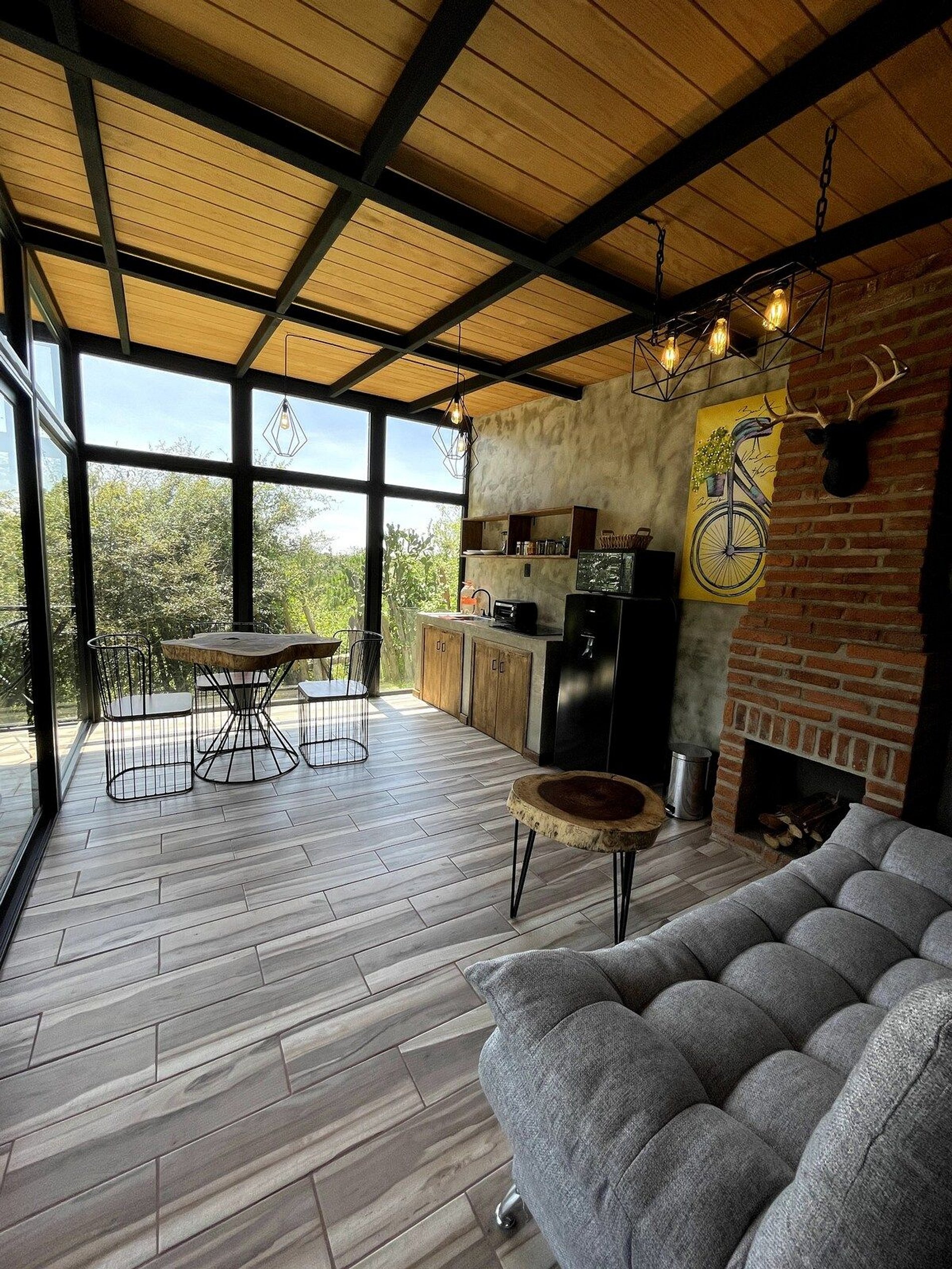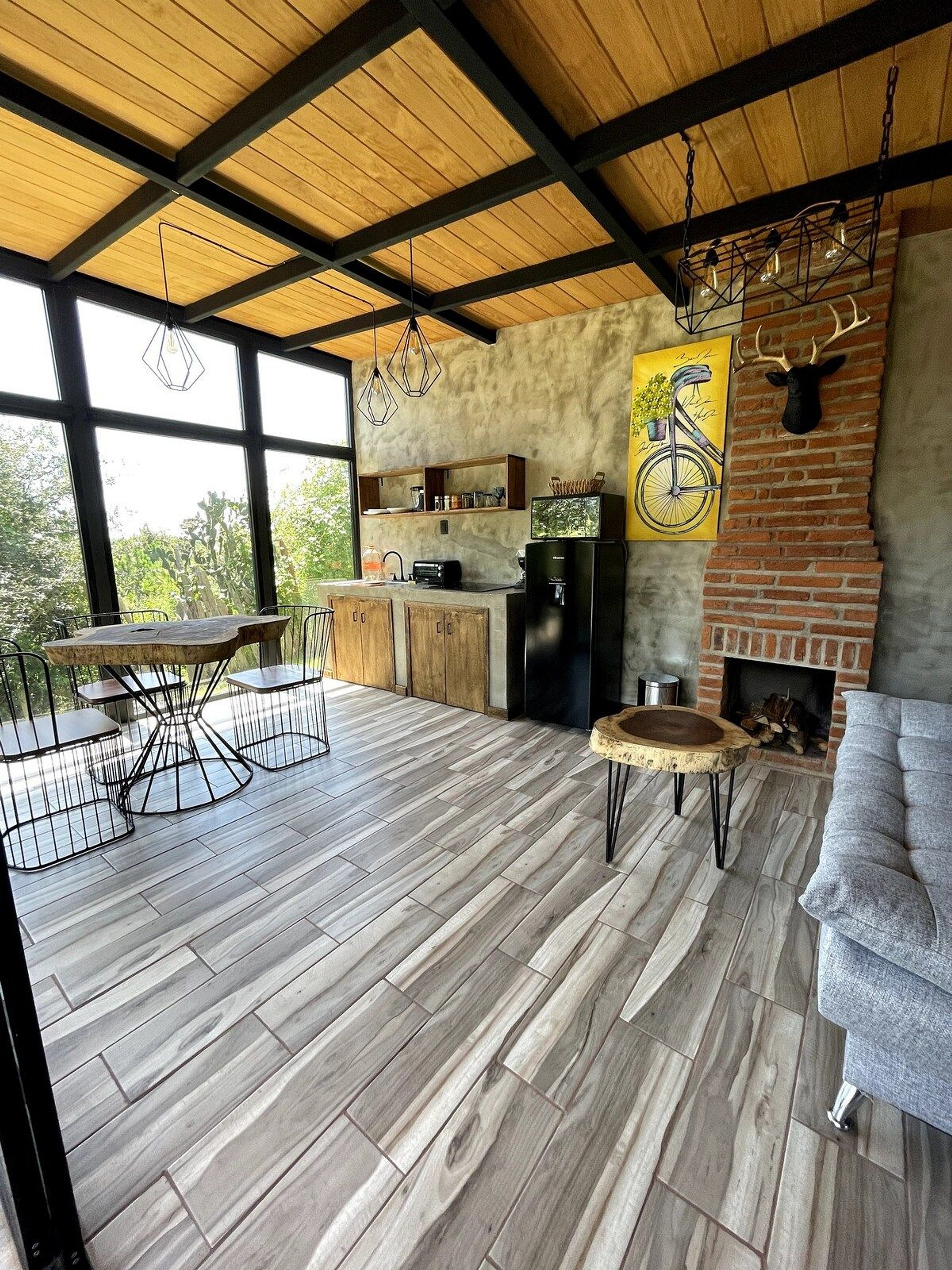 Una estancia acogedora en cabaña Buganvilia, a solo 8 minutos del pueblo Mágico de Tapalpa, cuenta con lo necesario para pasar una noche increíble Idealmente para dos personas, pero se cuenta con sofá cama donde caben 2 personas mas que se podrían agregar extra. Cocina equipada, chimenea en la sala, asador y zona de fogata al exterior. Toda la cabaña ya cuenta con cortinas blackout para mayor comodidad. *CONTAMOS CON TOUR EN CABALLO POR LA SIERRA DE TAPALPA, Pregunta por la información. Reserva Los Espinos es un complejo de 5 cabañas, cada una con un diseño diferente y ambientadas con los materiales ideales para Tapalpa con un toque minimalista. Cada cabaña cuenta con su propia área para hacer fogata al exterior y asador en su terraza. Acceso por desviación a Los Espinos, entre la frontera y el pueblo Mágico de Tapalpa.