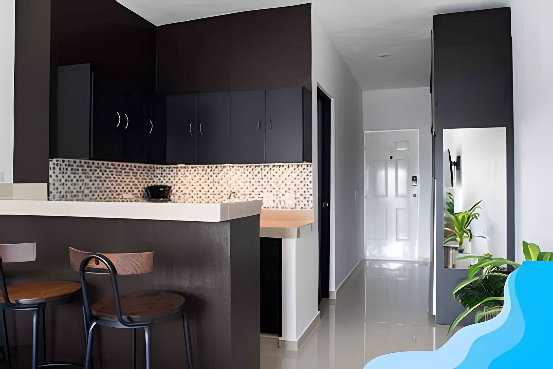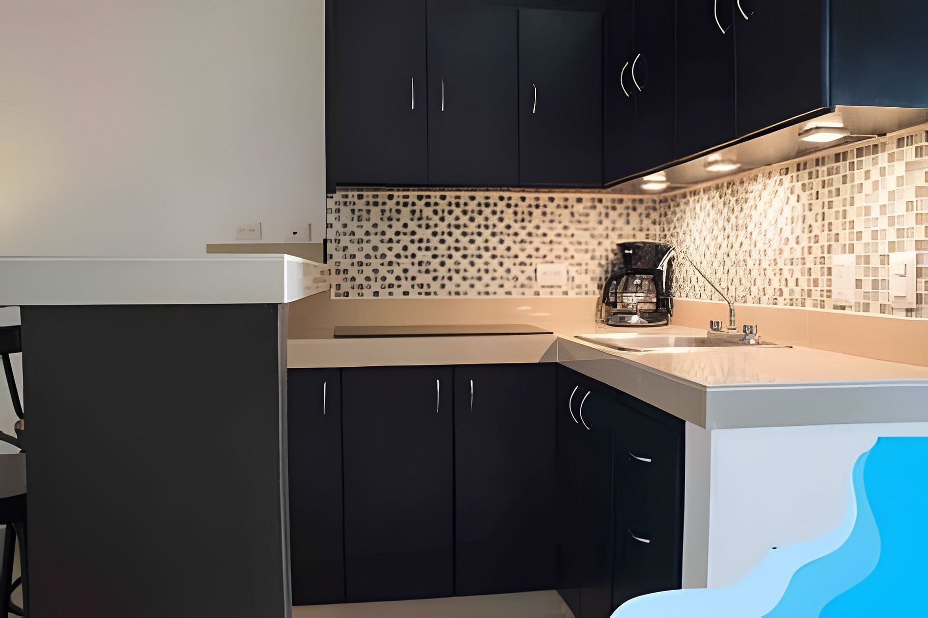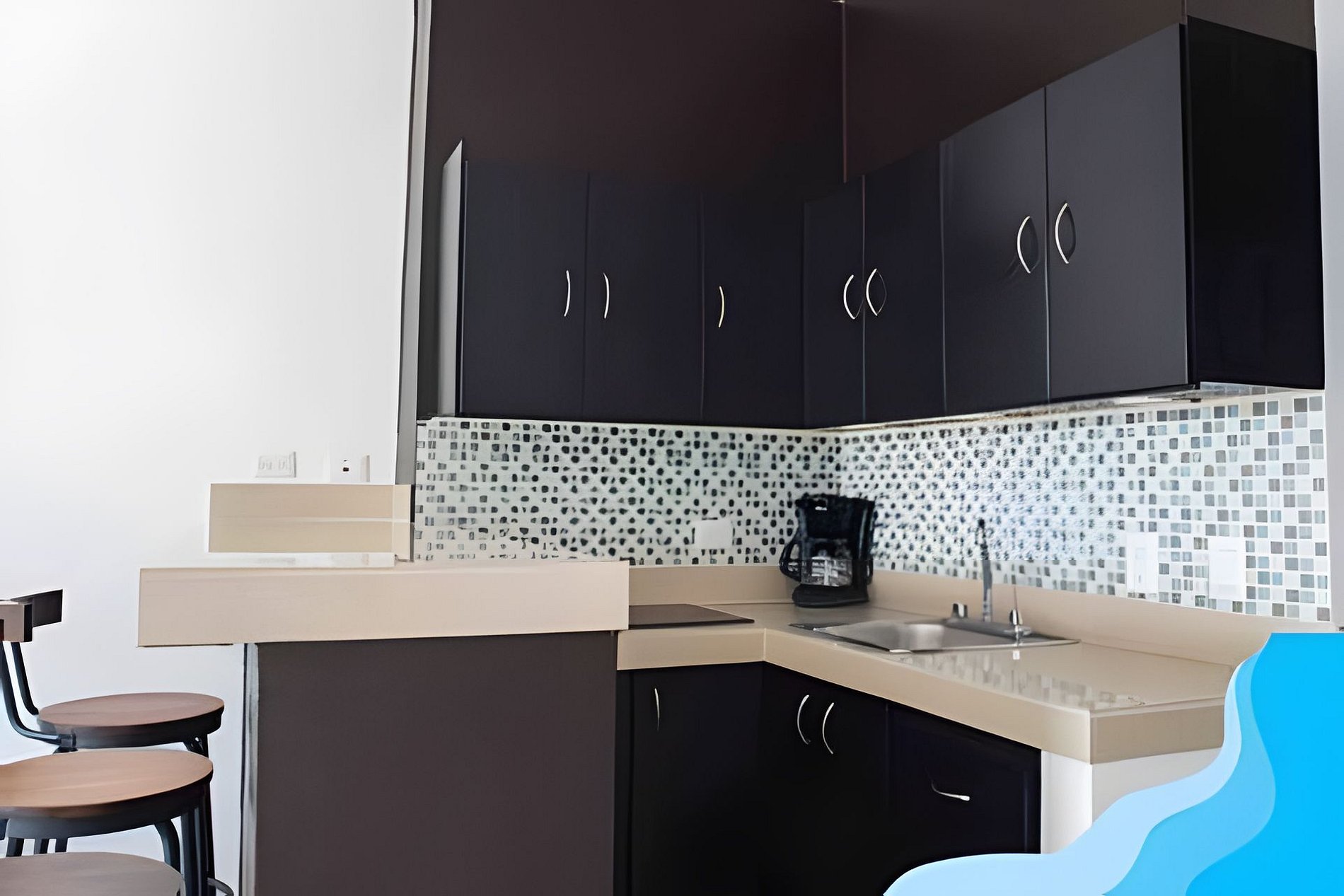 Ubicado en el segundo piso del complejo Suites Cozumel Condominium, este moderno estudio cuenta con todas las comodidades necesarias para disfrutar de la isla. Disfrute de una gran noche de sueño en un colchón king size de gama alta y una cama doble para dos huéspedes extra con un costo adicional. La cocina está totalmente equipada con utensilios y electrodomésticos necesarios para cocinar una comida fabulosa.